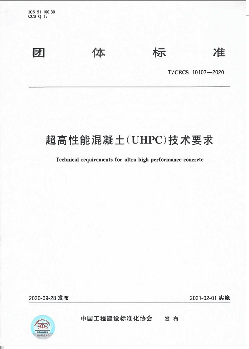 由我公司參編的《超高性能混凝土(UHPC)技術(shù)要求》(CECS)標(biāo)準(zhǔn)正式頒布
